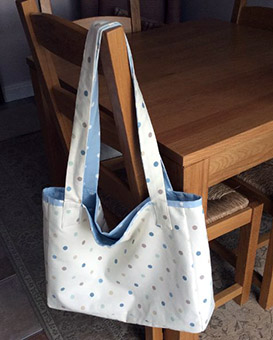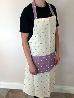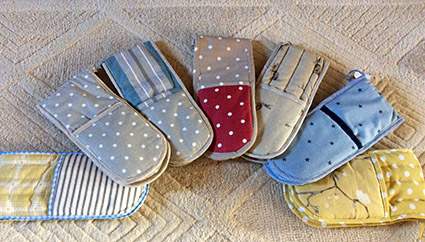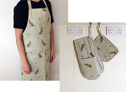 She now makes a range of individually designed aprons, oven gloves and reversible tote bags, handcrafted in quality cottons and linens. |